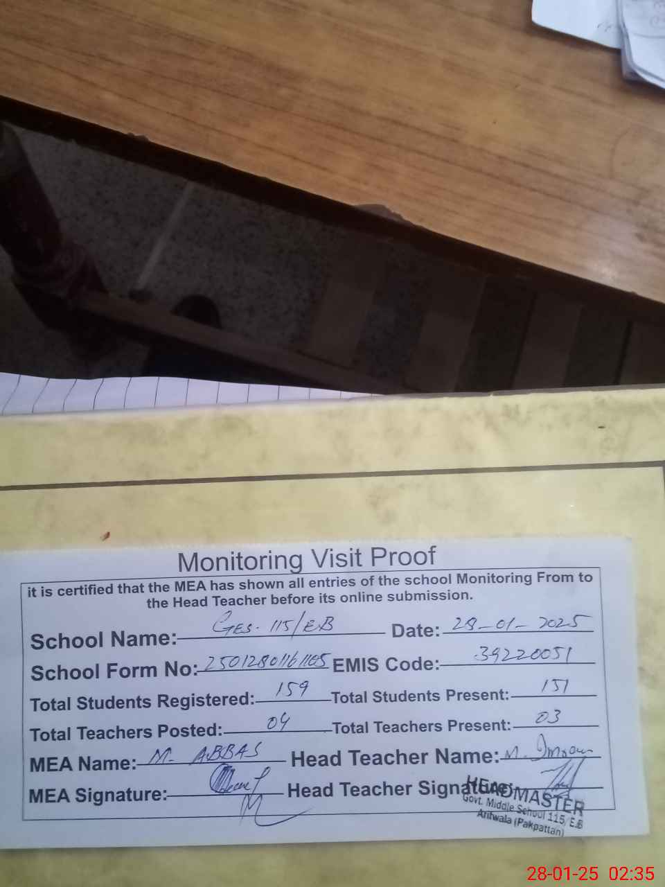 | EMIS Code: 39220051 | Name of School: GES 115 EB ARIF WALA | |||