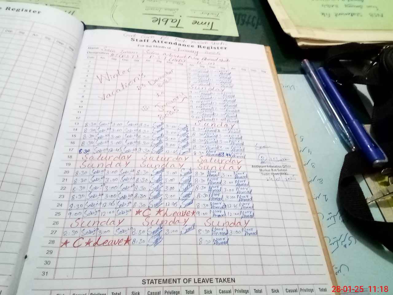 | Leave | Duty | Absent | Maternity | Medical | Ex- Pak |