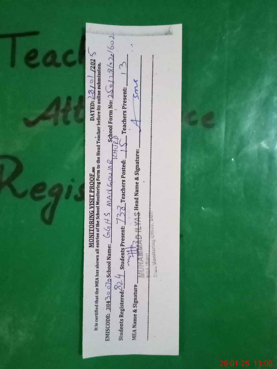 | Attendance Register | Head Teacher | MEA with School | Visit Proof |