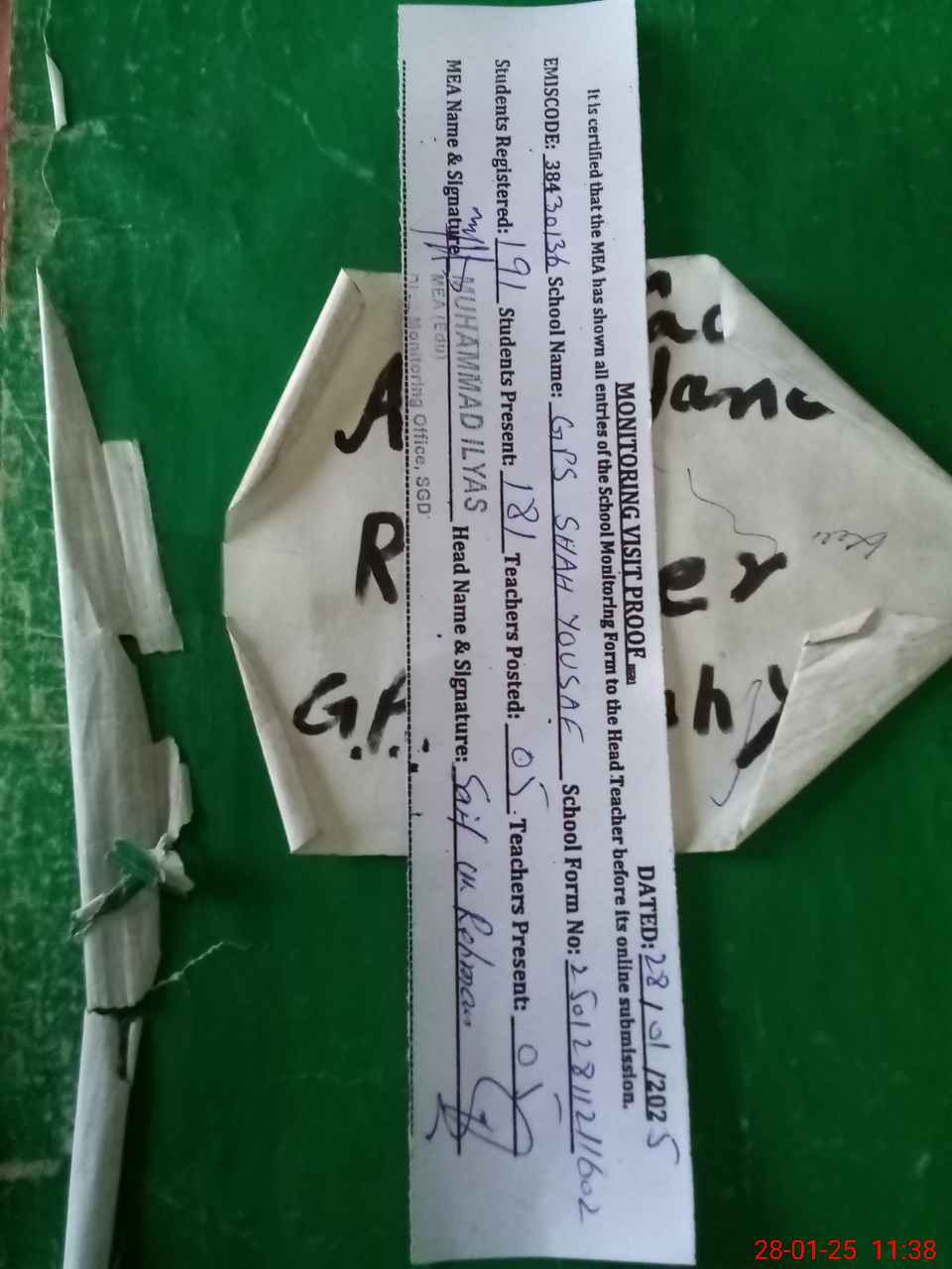 | EMIS Code: 38430136 | Name of School: GPS SHAH YOUSAF | |||