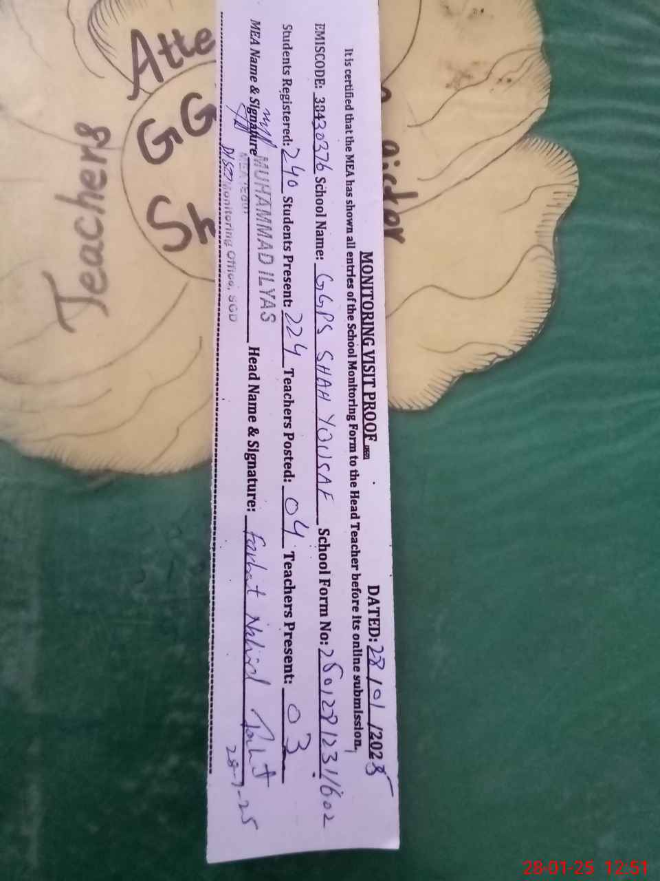 | EMIS Code: 38430376 | Name of School: GGPS SHAH YOUSAF | |||