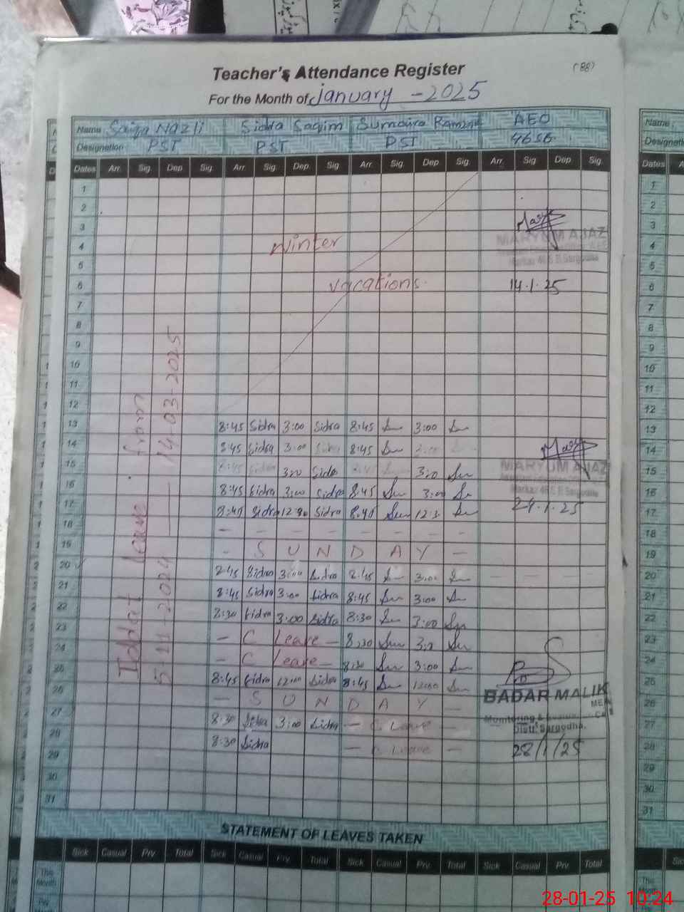 | Name: Si**** Sa**** Designation: (School Headmaster's/Headmistress's) PST Phone/Cell Number: 03**** |