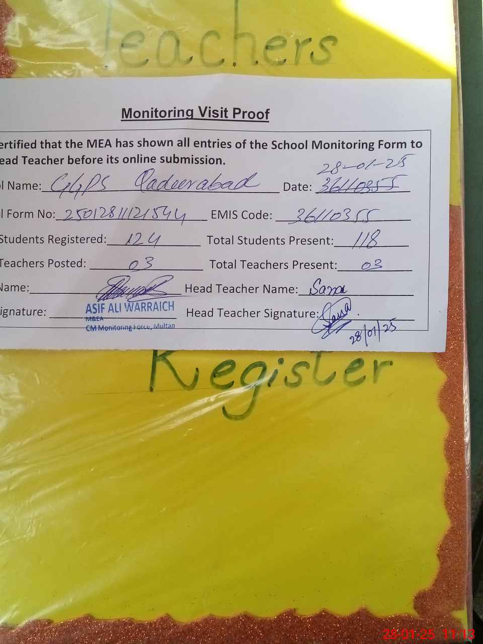 | EMIS Code: 36110355 | Name of School: GGPS MC QADEER ABAD MULTAN | |||