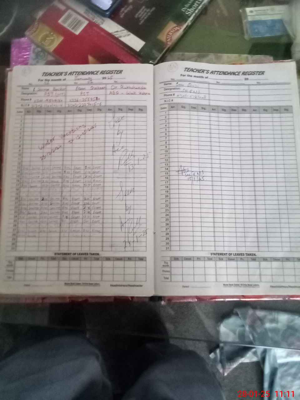 | CNIC | Full Name | Designation | R/C | Absence During Last Calender Month |