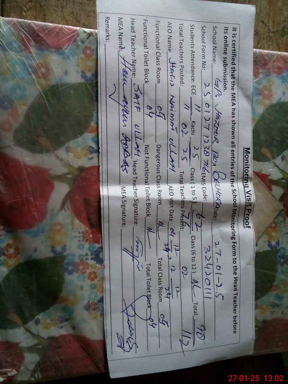 | EMIS Code: 32420111 | Name of School: GPS HAZOOR BAKHSH BALHORA | |||