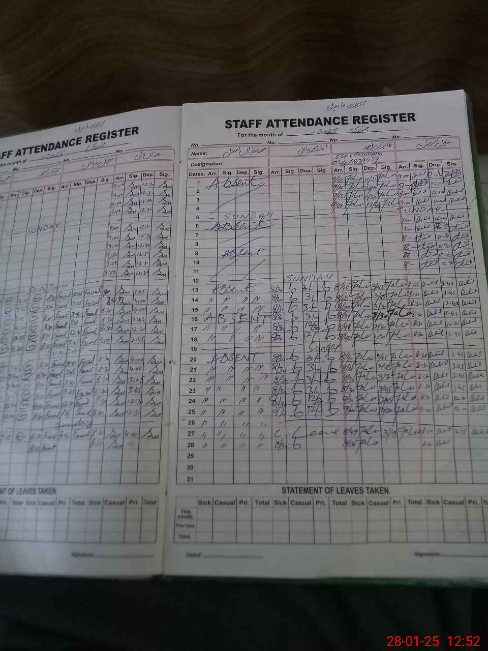 | CNIC | Full Name | Designation | R/C | Absence During Last Calender Month |