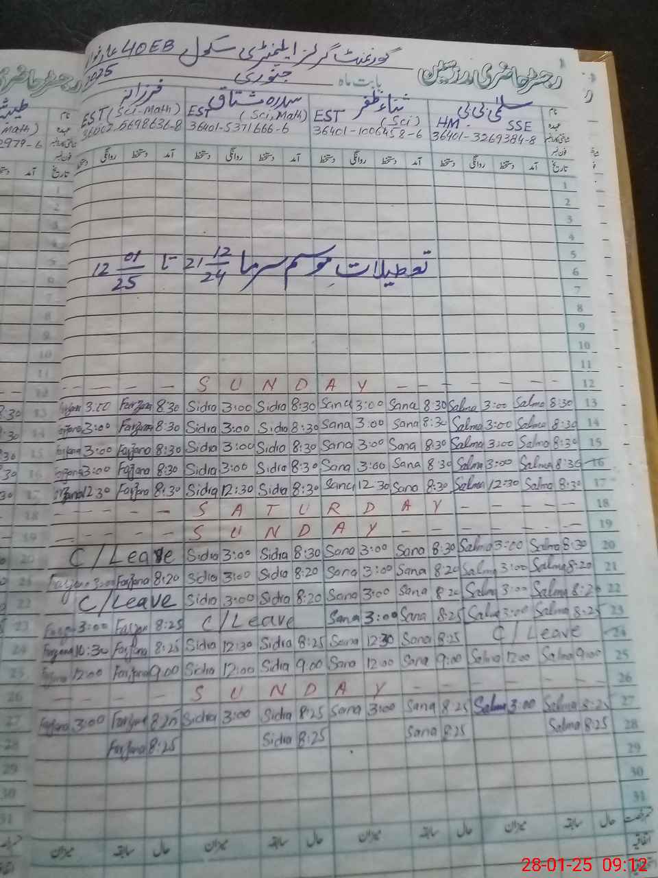 | Name: SA**** ZA**** Designation: (School Headmaster's/Headmistress's) EST (SCI) Phone/Cell Number: 03**** |