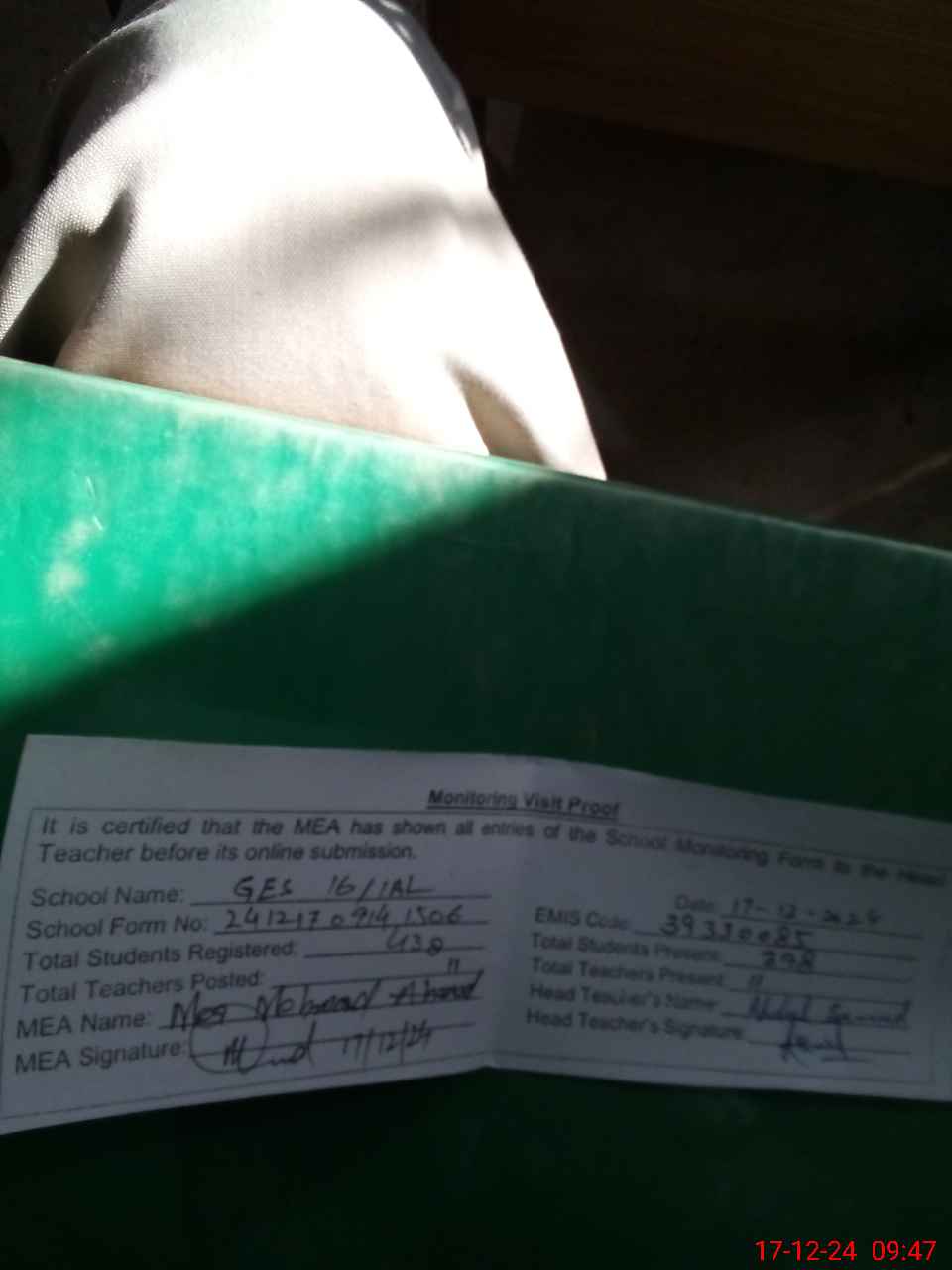 | EMIS Code: 39330085 | Name of School: GES CHAK NO. 16/1-AL | |||