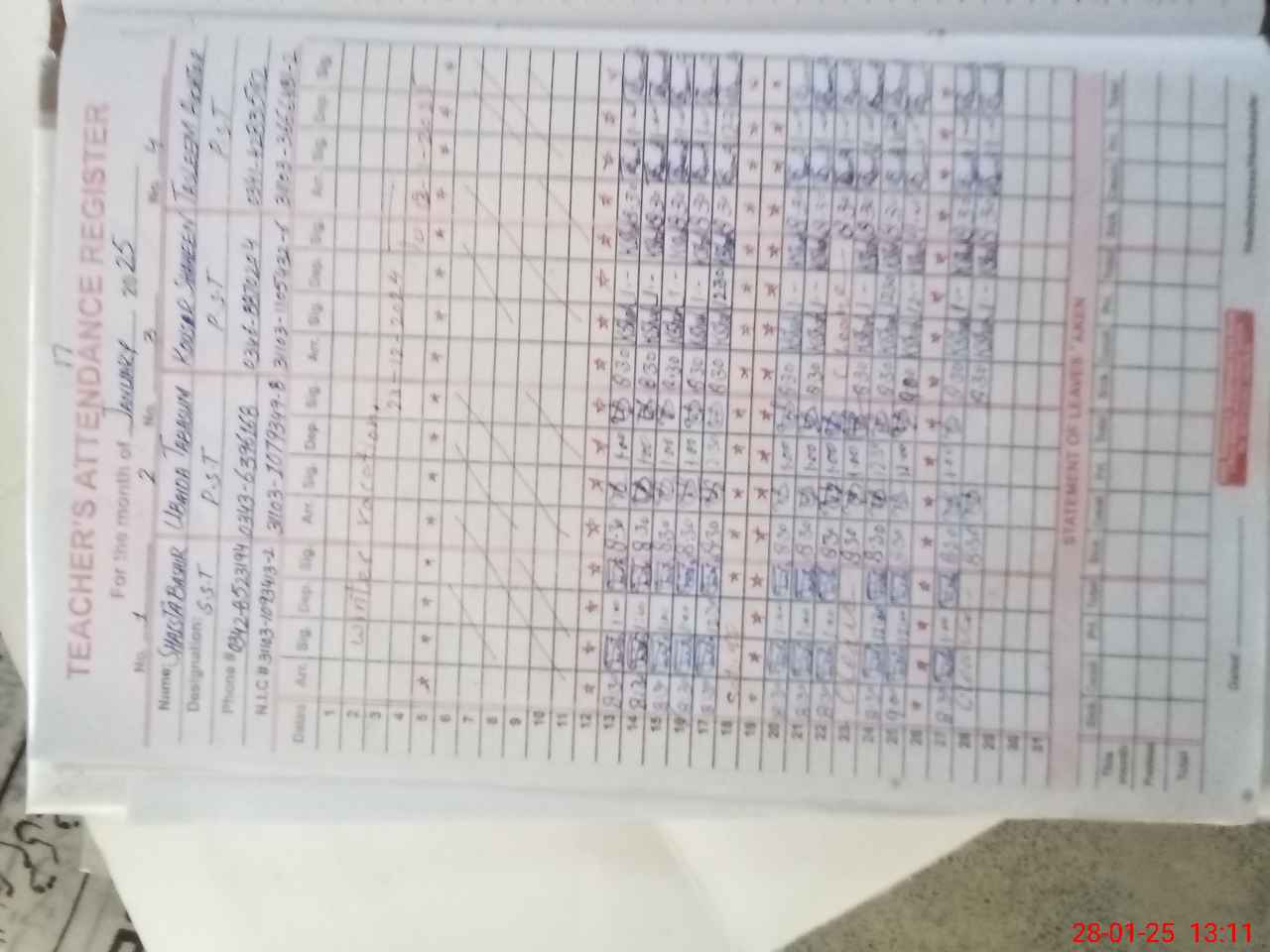 | Name: Sh**** Ba**** Designation: (School Headmaster's/Headmistress's) SST Phone/Cell Number: 03**** |