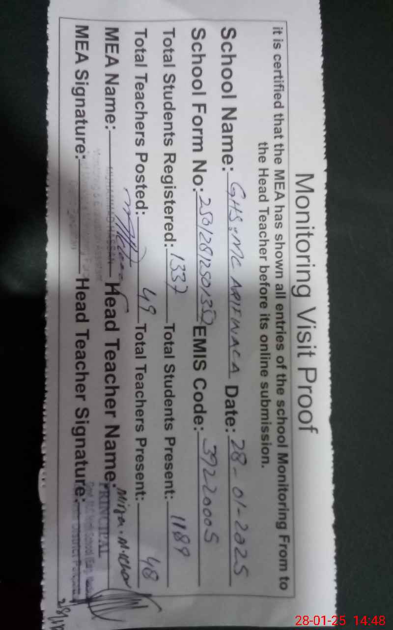 | EMIS Code: 39220005 | Name of School: GHS MC ARIF WALA | |||