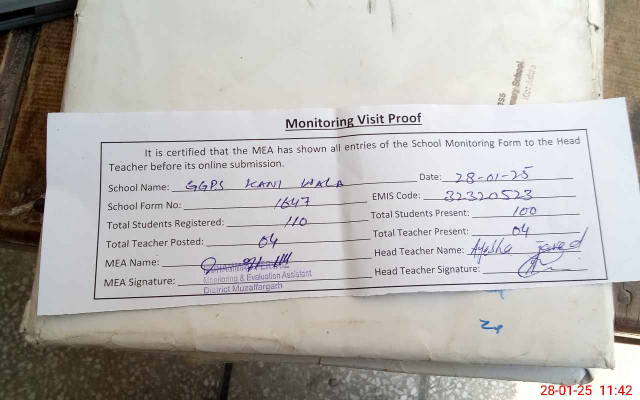 | EMIS Code: 32320523 | Name of School: GGPS KANI WALA | |||