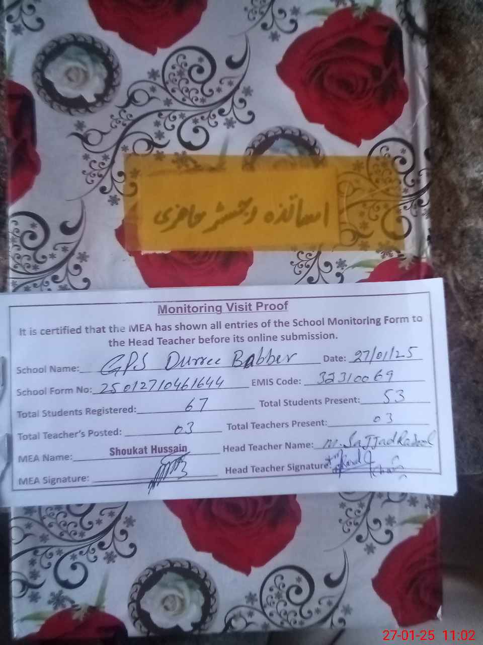 | EMIS Code: 32310069 | Name of School: GPS DUREE BABBER | |||