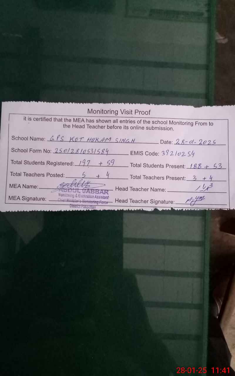| EMIS Code: 39210254 | Name of School: GPS KOT HUKAM SINGH | |||