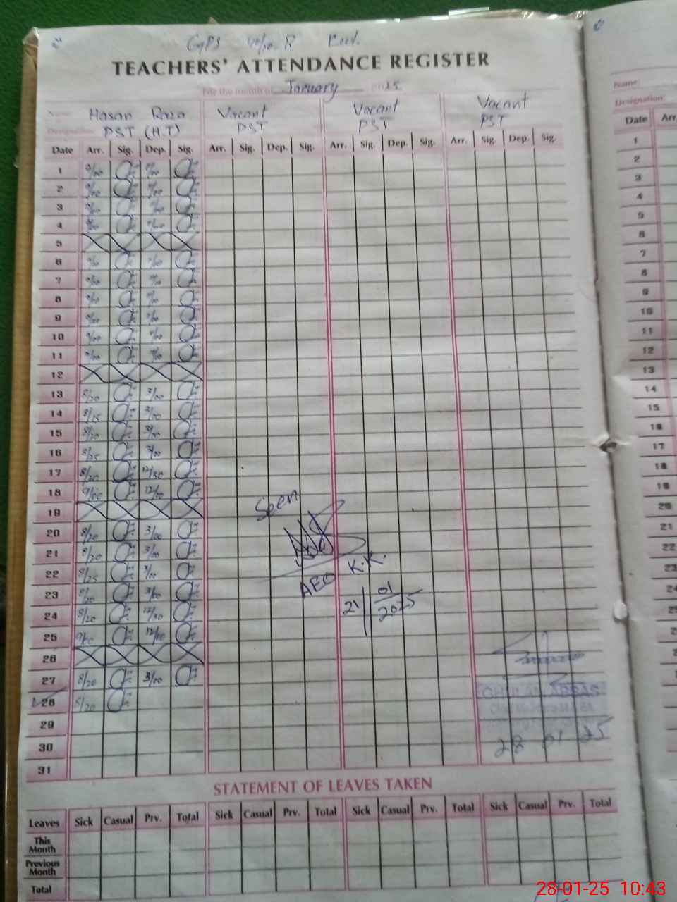| Name: Ha**** Ra**** Designation: (School Headmaster's/Headmistress's) PST Phone/Cell Number: 03**** |