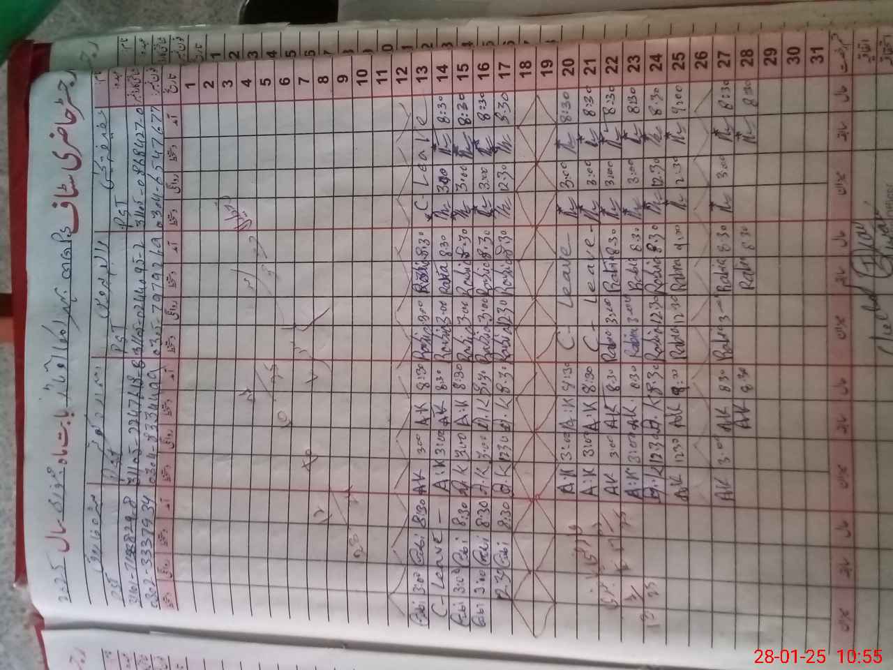 | CNIC | Full Name | Designation | R/C | Absence During Last Calender Month |
