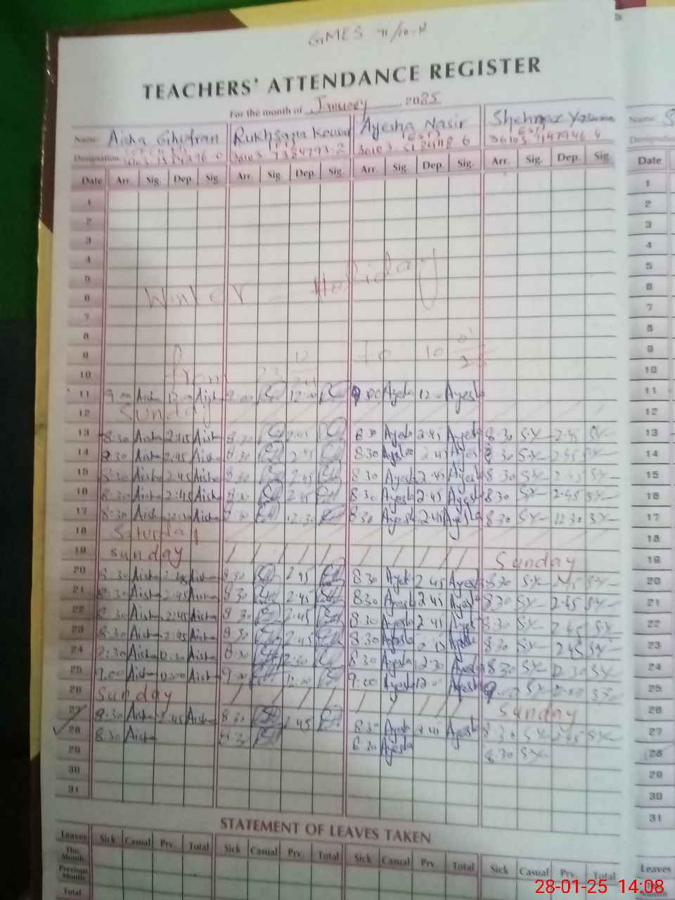 | CNIC | Full Name | Designation | R/C | Absence During Last Calender Month |