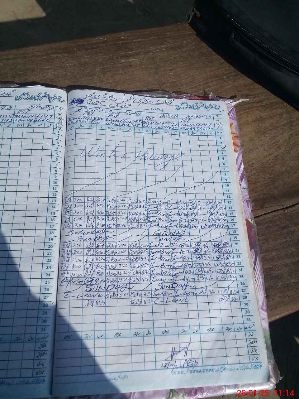 | CNIC | Full Name | Designation | R/C | Absence During Last Calender Month |