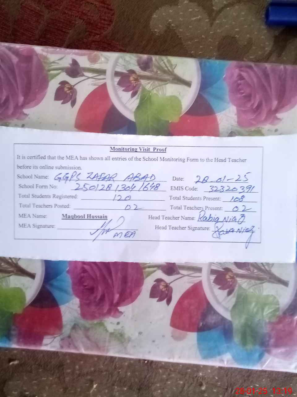 | EMIS Code: 32320391 | Name of School: GGPS ZAFFAR ABAD | |||