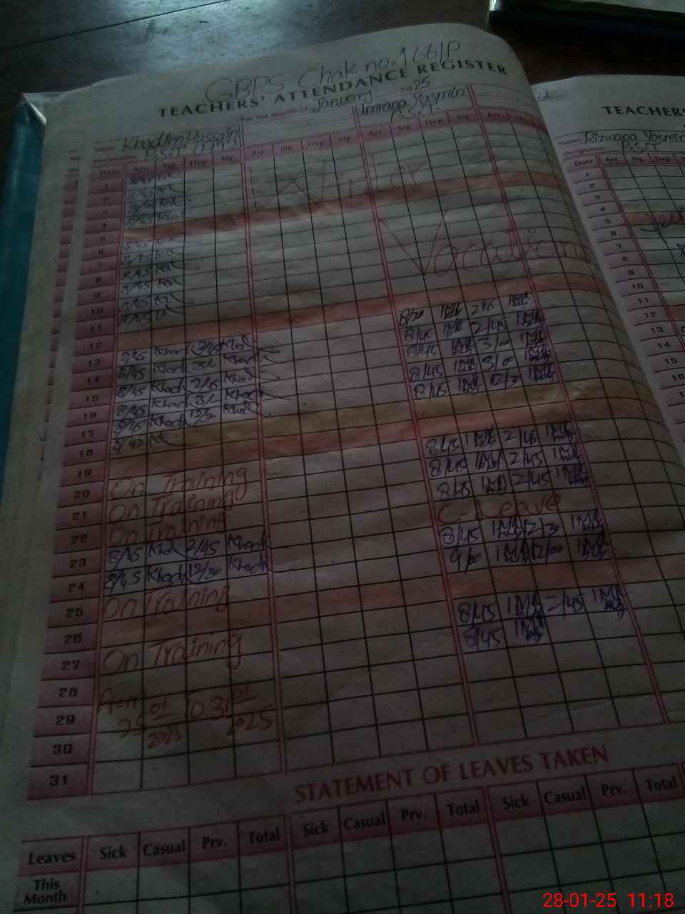| Name: KH**** HU**** Designation: (School Headmaster's/Headmistress's) PST Phone/Cell Number: 03**** |