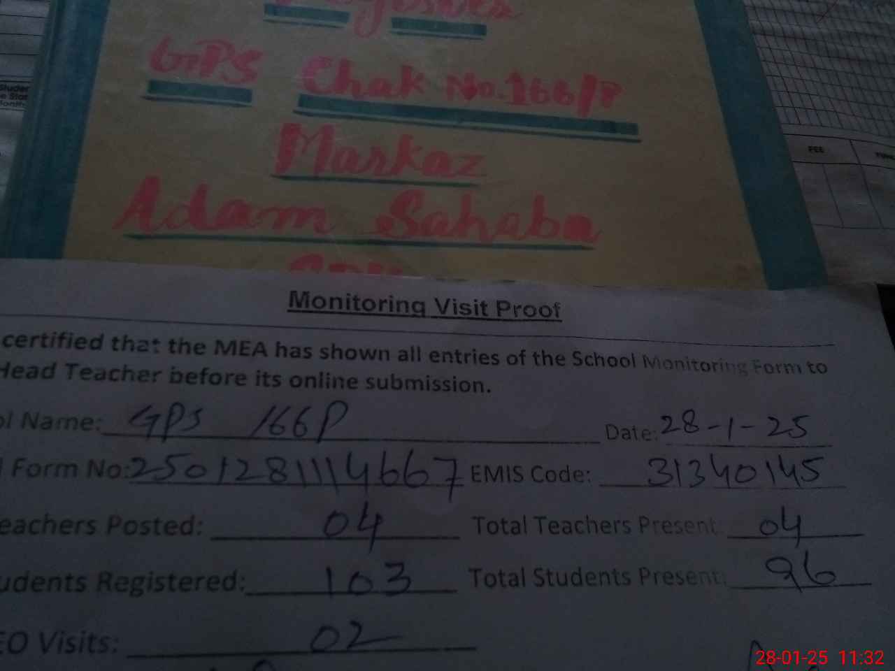 | EMIS Code: 31340145 | Name of School: GPS CHAK 166/P | |||