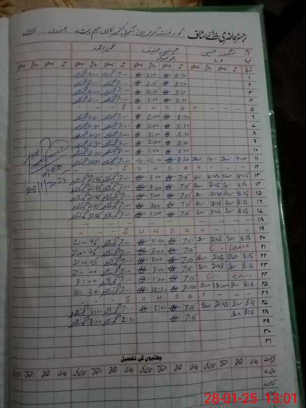 | CNIC | Full Name | Designation | R/C | Absence During Last Calender Month |