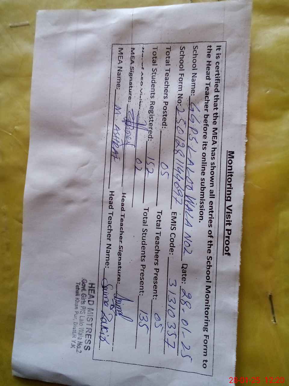 | EMIS Code: 31310357 | Name of School: GGPS LALOO WALA NO. 2 | |||