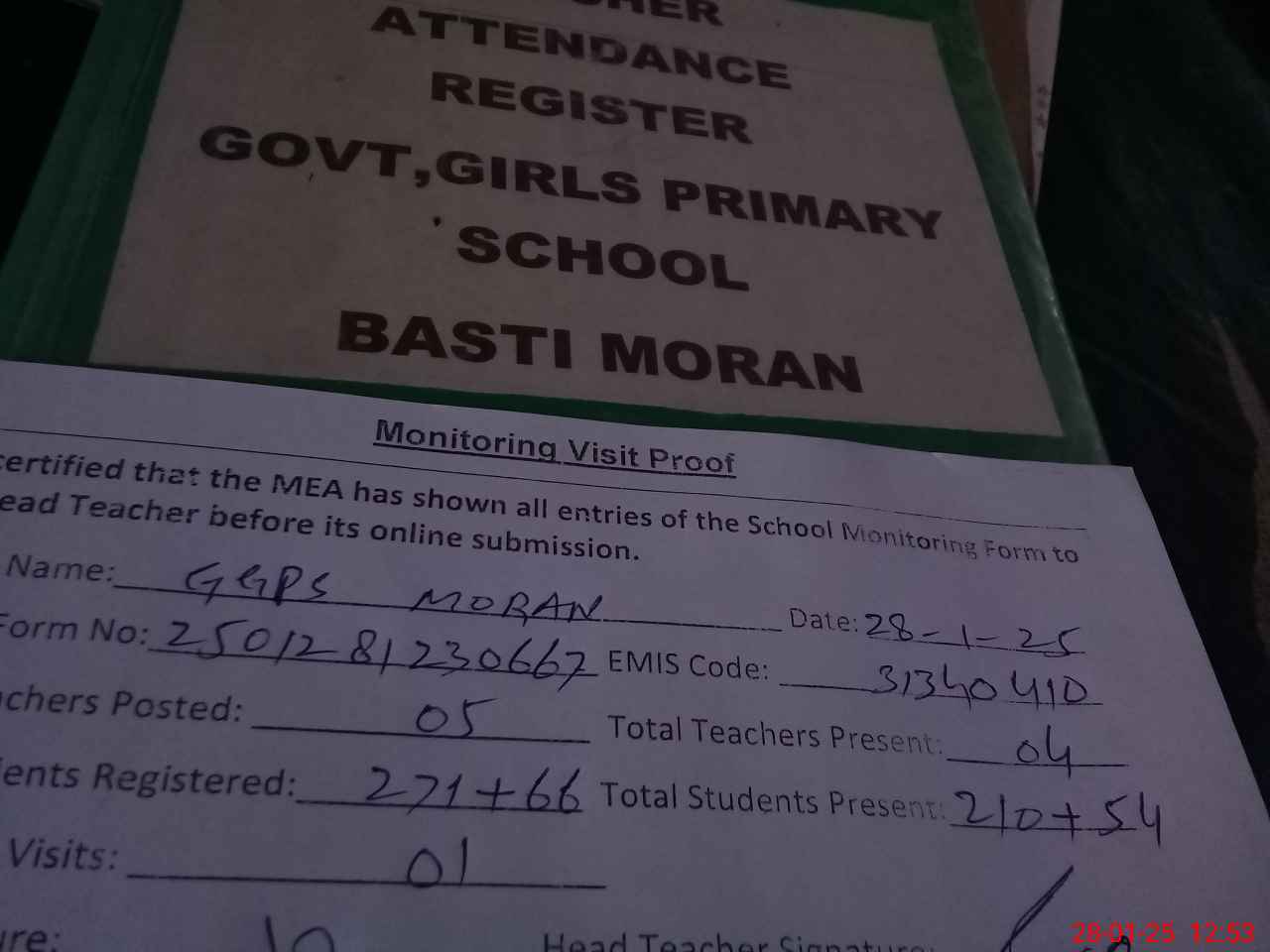 | Attendance Register | Head Teacher | MEA with School | Visit Proof |