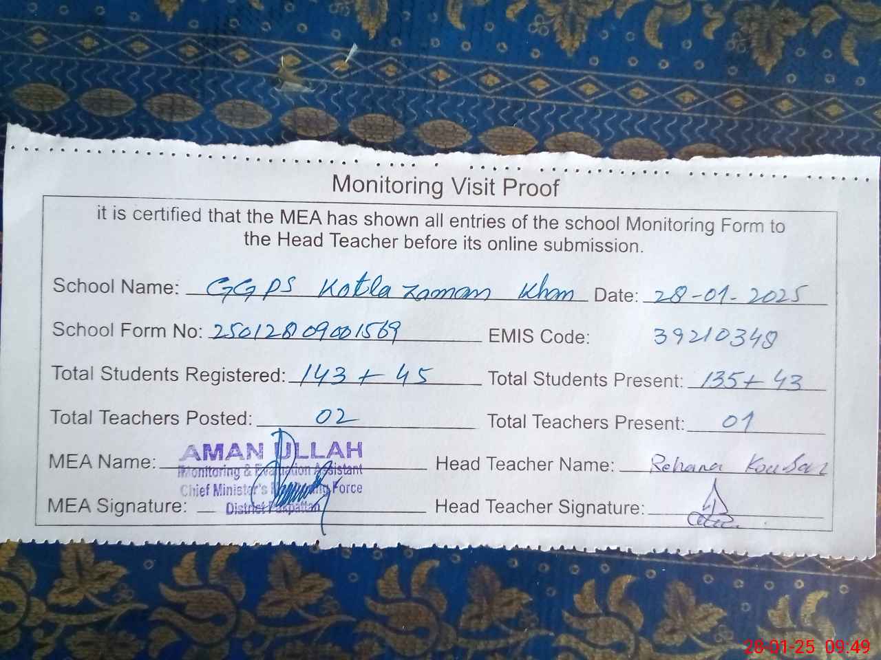 | EMIS Code: 39210348 | Name of School: GGPS KOTLA ZAMAN KHAN | |||