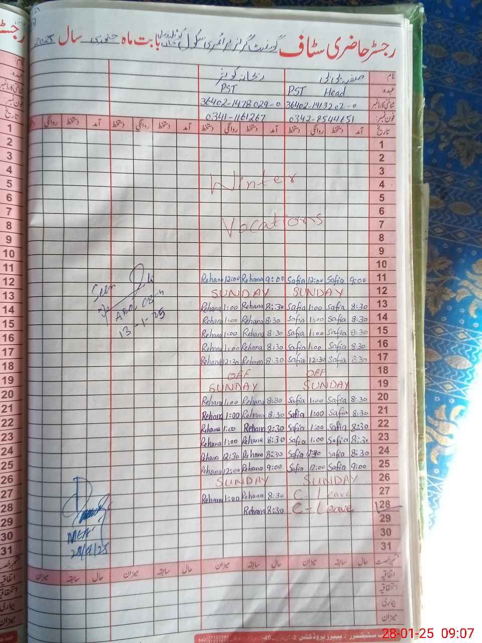| Name: Sa**** Bi**** Designation: (School Headmaster's/Headmistress's) PST Phone/Cell Number: 03**** |