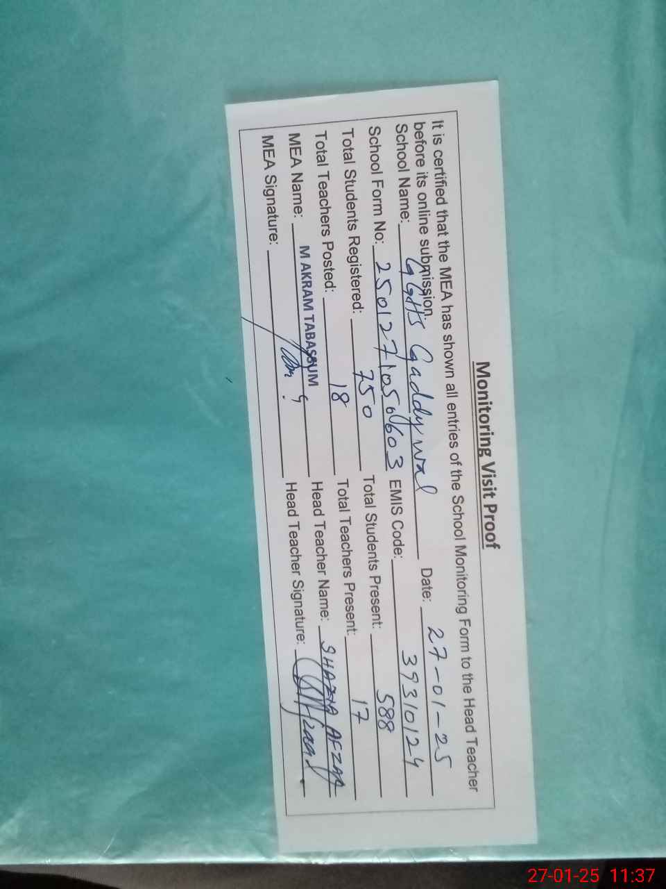 | EMIS Code: 39310124 | Name of School: GGHS GADDY WAL | |||