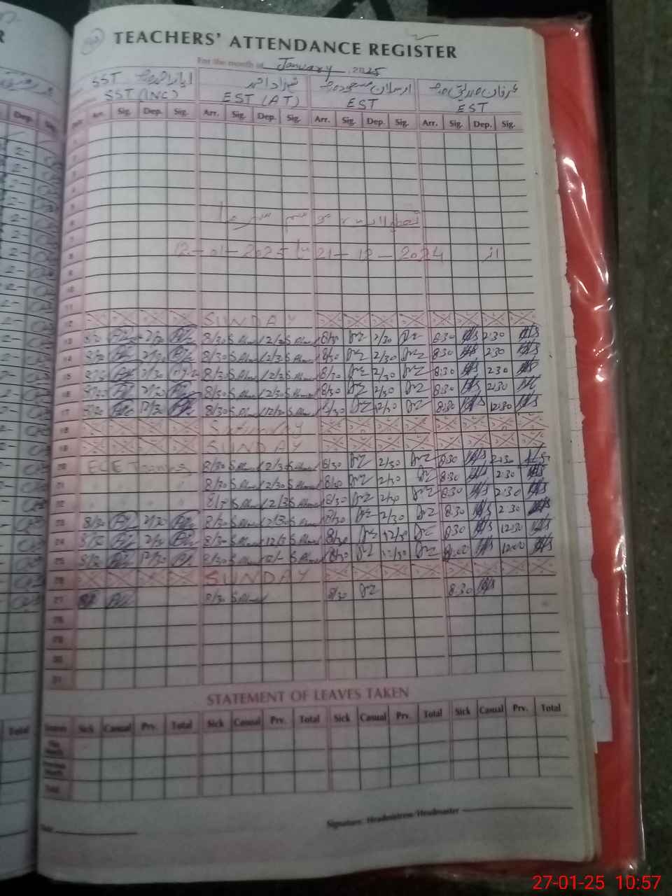 | CNIC | Full Name | Designation | R/C | Absence During Last Calender Month |