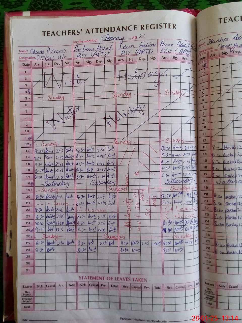 | 31**** | Am**** Ab**** Ra**** | ESE(Arts) | Temporary | 2 | 0 | 0 | 0 | 0 | 0 | 0 | 0 | 2 | Present |
