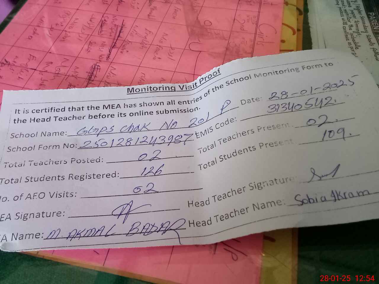 | EMIS Code: 31340542 | Name of School: GGPS CHAK NO 201/P | |||