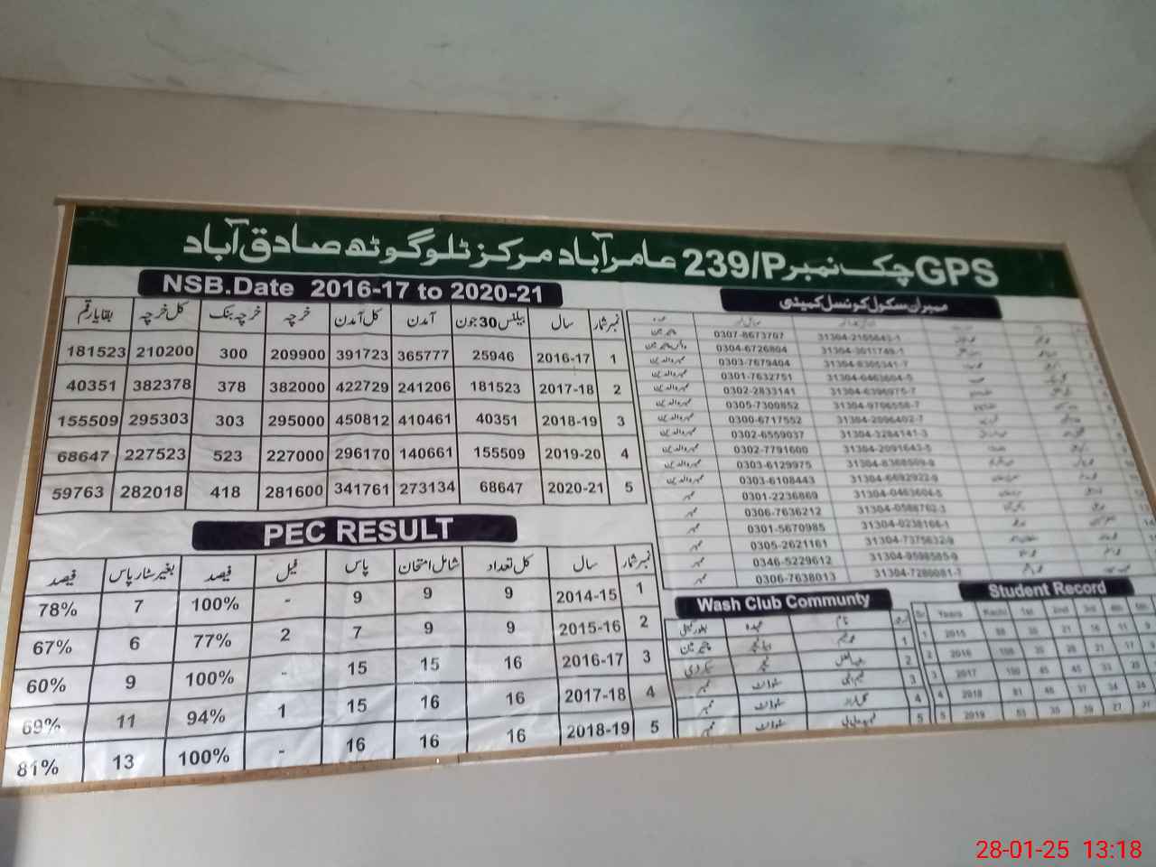 | EMIS Code: 31340248 | Name of School: GPS CHAK NO 239 P | |||