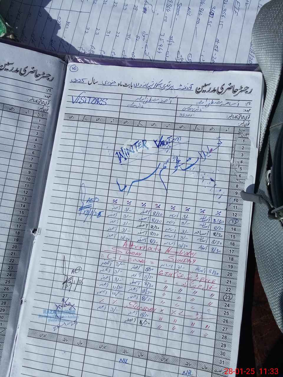 | CNIC | Full Name | Designation | R/C | Absence During Last Calender Month |