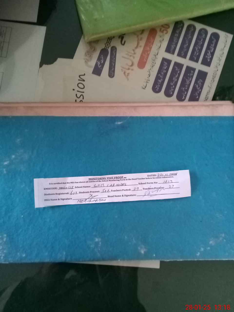 | Attendance Register | Head Teacher | MEA with School | Visit Proof |