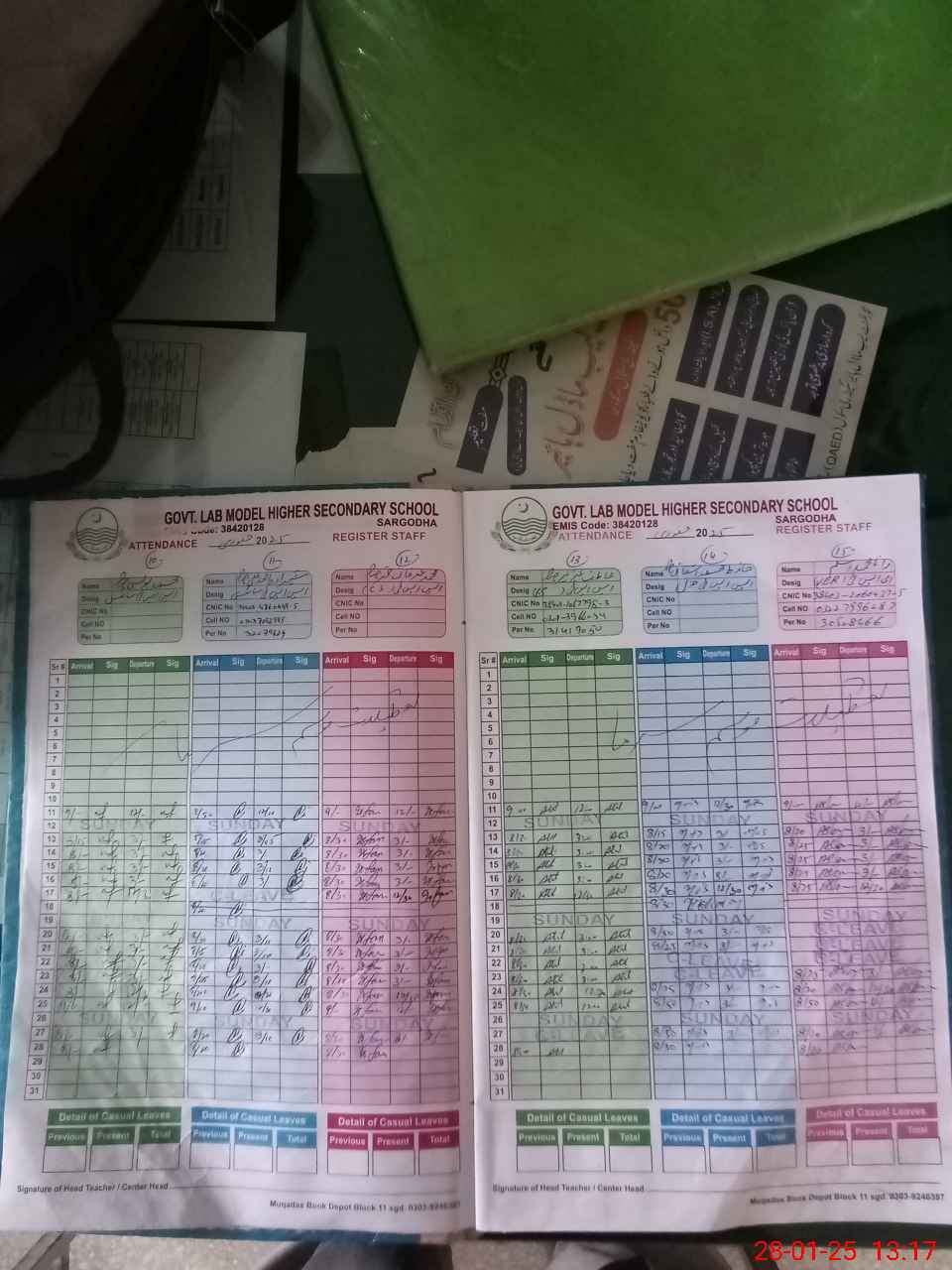 | CNIC | Full Name | Designation | R/C | Absence During Last Calender Month |