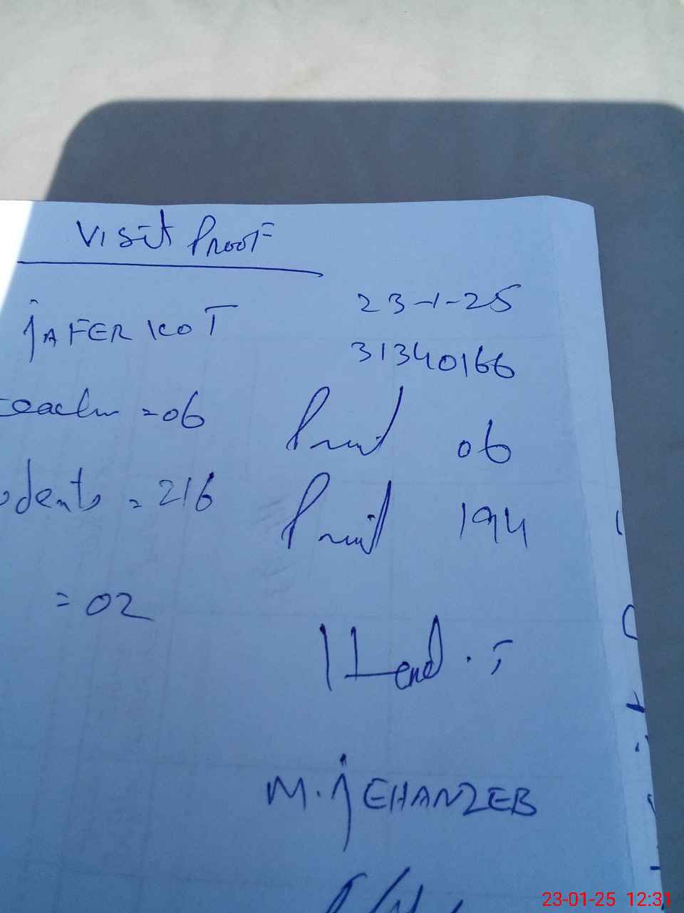 | Attendance Register | Head Teacher | MEA with School | Visit Proof |