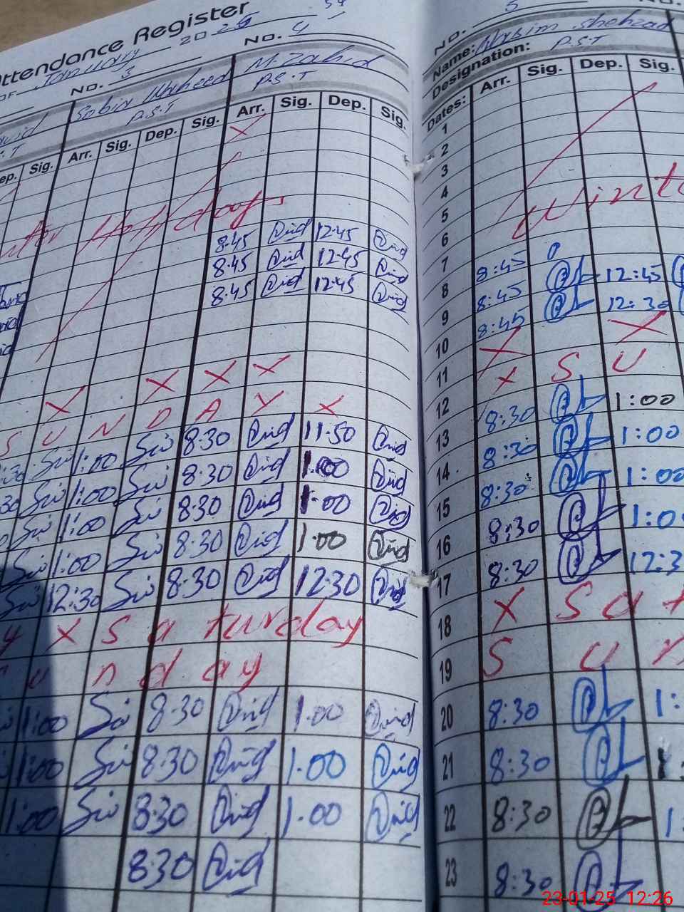 | CNIC | Full Name | Designation | R/C | Absence During Last Calender Month |