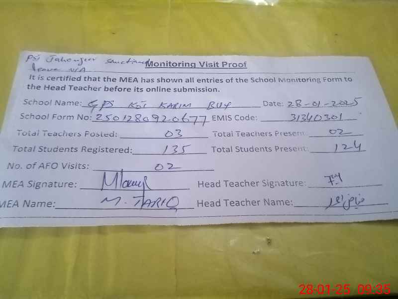 | EMIS Code: 31340301 | Name of School: GPS KOT KARIM BAKHSH | |||