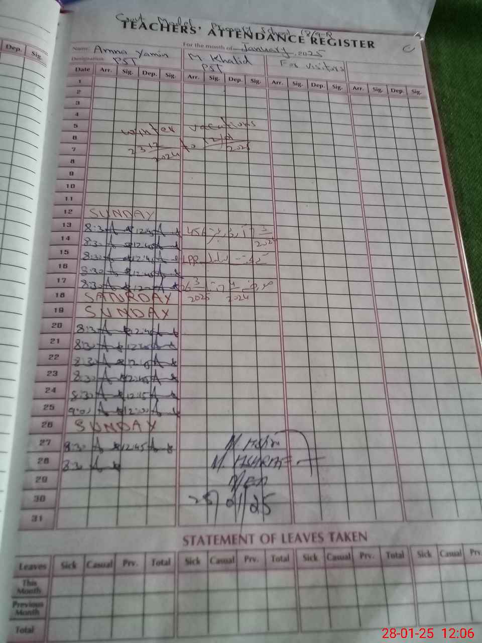 | Name: AM**** YA**** Designation: (School Headmaster's/Headmistress's) PST Phone/Cell Number: 03**** |