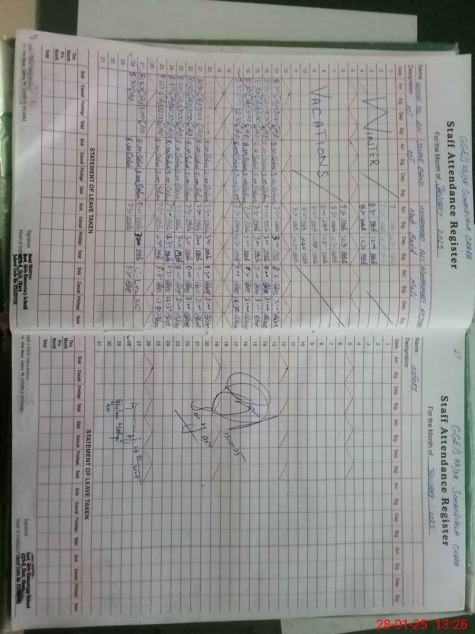 | Total no. of Classrooms: 9 No. of Classrooms Used for Teaching: 7 No. of Classrooms Storing Old Furniture, FTBs, etc: 0Comments if Any: Nominal roll for online attendance found contrary to current students records All enrolled students provided with free taxtbooks accordingly |