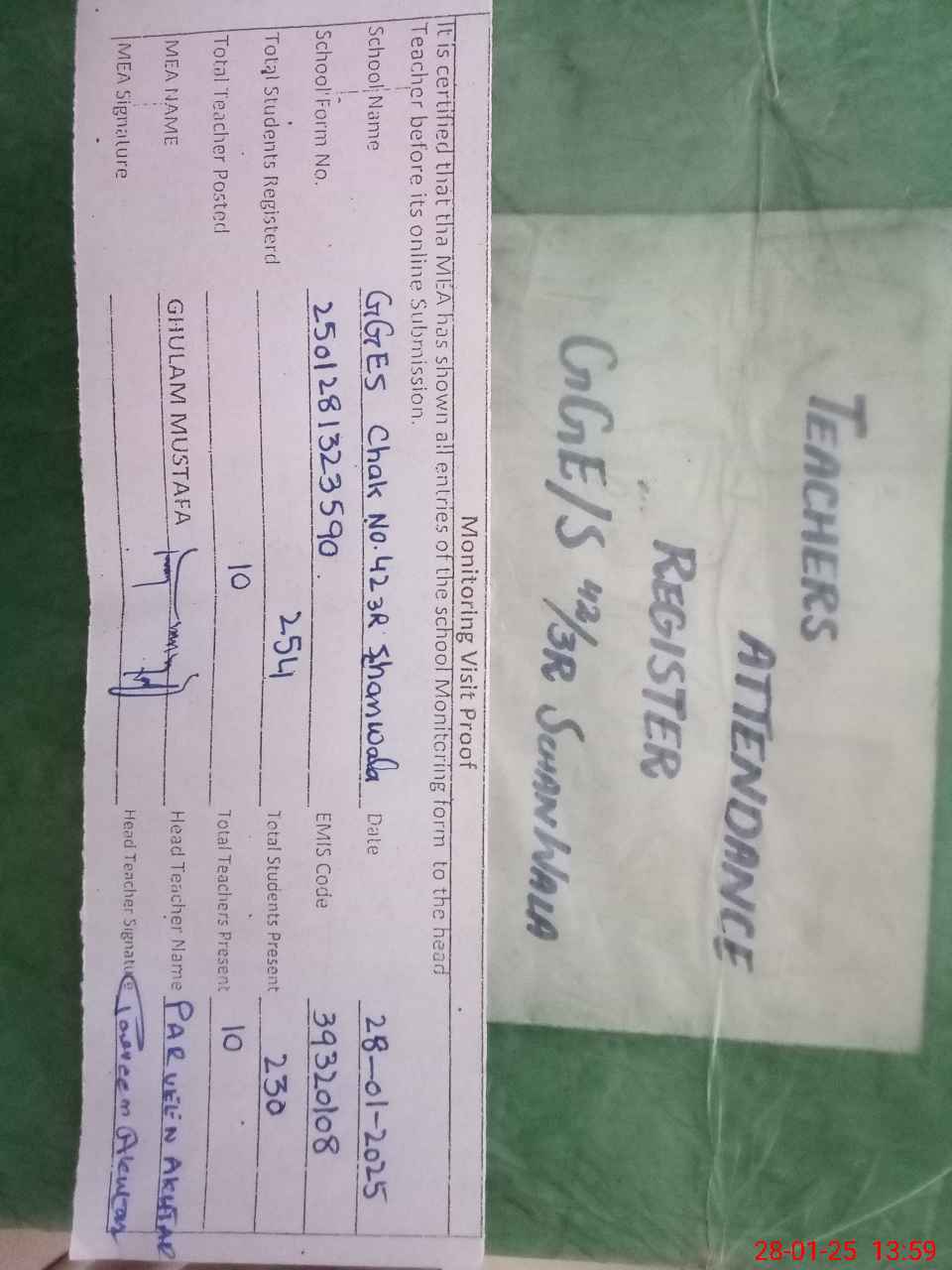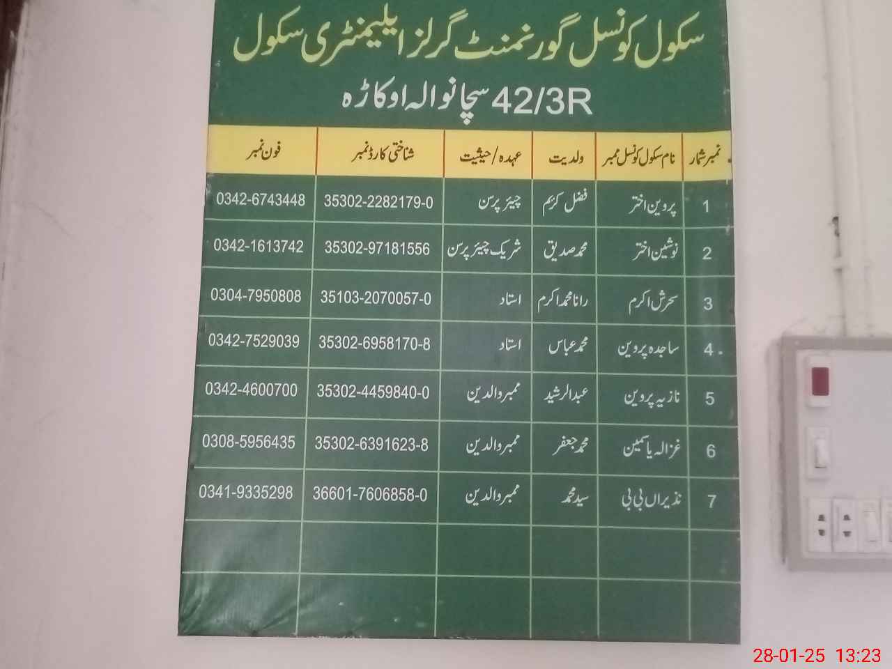 | EMIS Code: 39320108 | Name of School: GGES CHAK NO.42/3-R SACHAN WALA | |||
