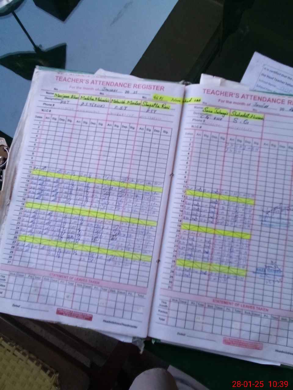 | CNIC | Full Name | Designation | R/C | Absence During Last Calender Month |