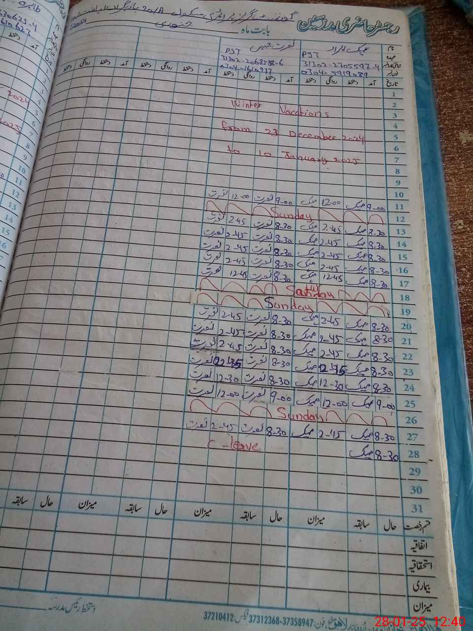 | Name: ME**** IB**** Designation: (School Headmaster's/Headmistress's) PST/PTC/JV Phone/Cell Number: 03**** |