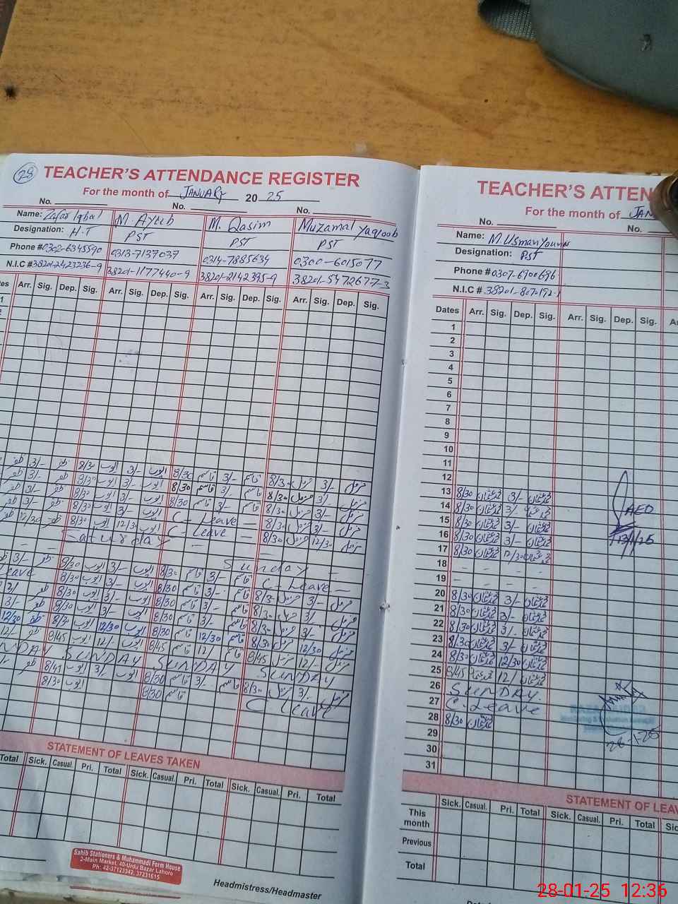 | Name: Za**** Iq**** Designation: (School Headmaster's/Headmistress's) Pst Phone/Cell Number: 03**** |