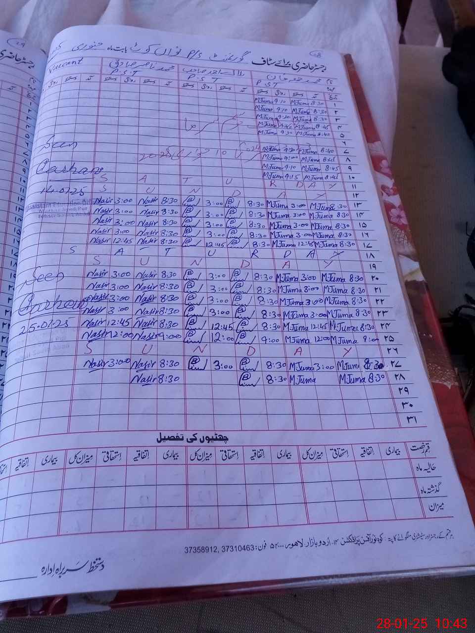 | Name: M.**** KH**** Designation: (School Headmaster's/Headmistress's) PST/PTC/JV Phone/Cell Number: 03**** |