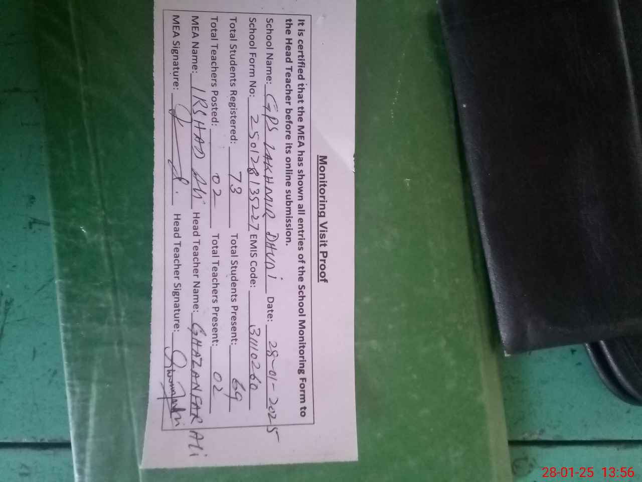 | EMIS Code: 31110260 | Name of School: GPS LAKHMIR DHUDI | |||