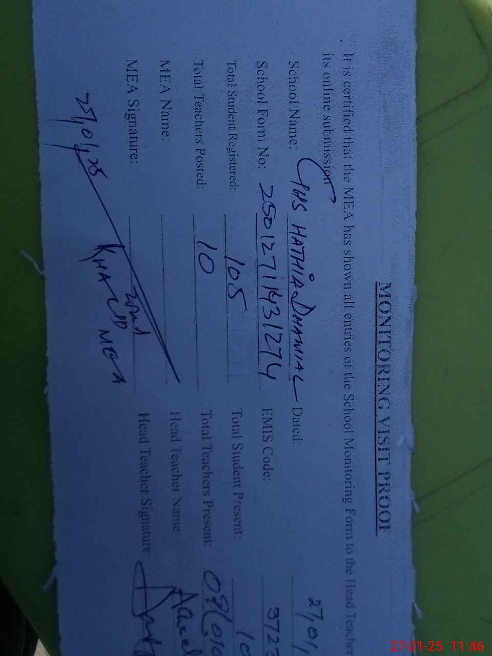 | EMIS Code: 37230030 | Name of School: GHS HATHIA DHAMIAL | |||
