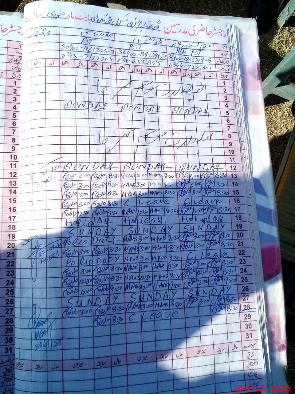| Name: MAn**** Designation: (School Headmaster's/Headmistress's) PST Phone/Cell Number: 03**** |